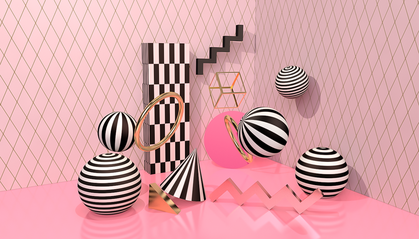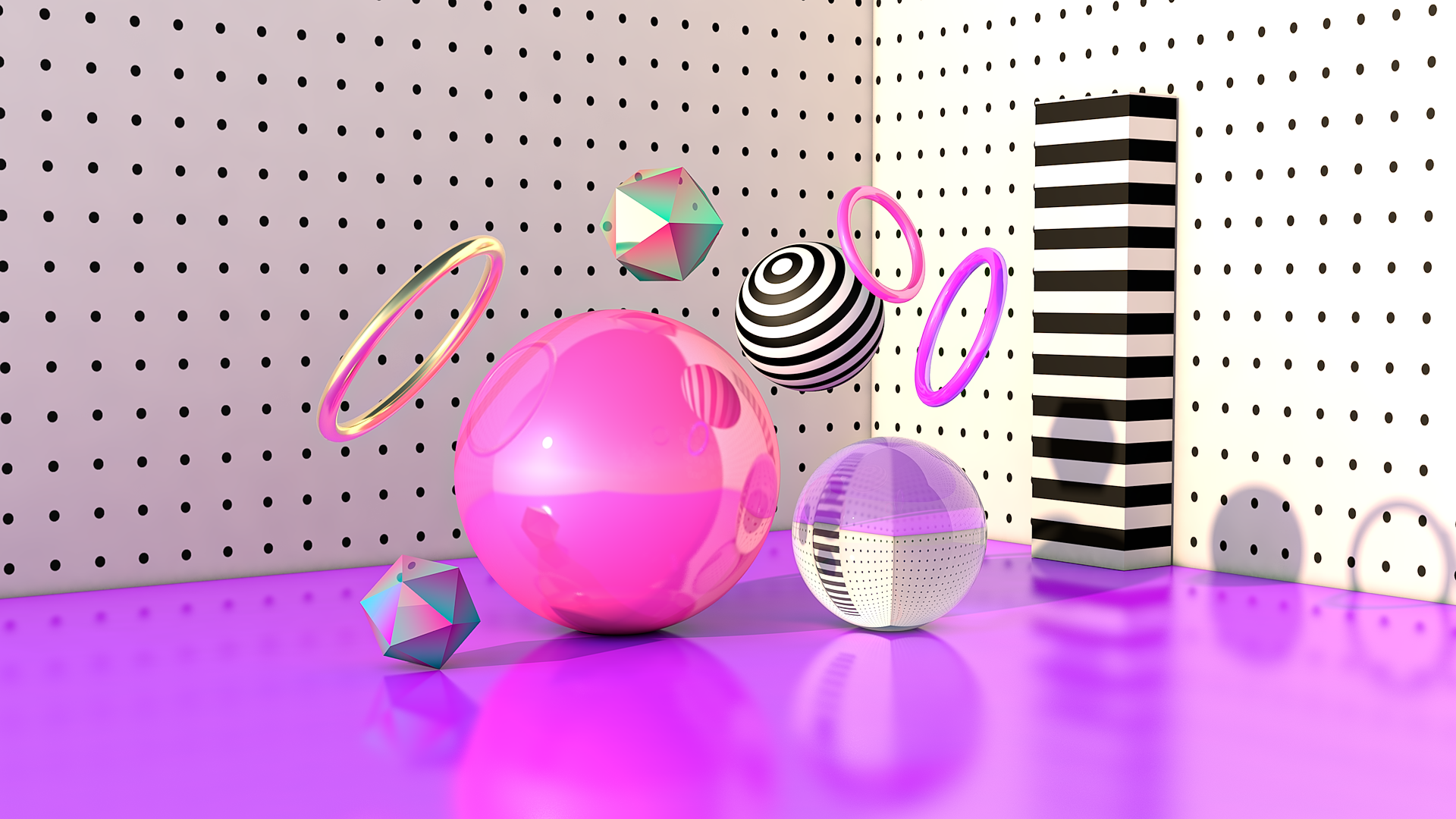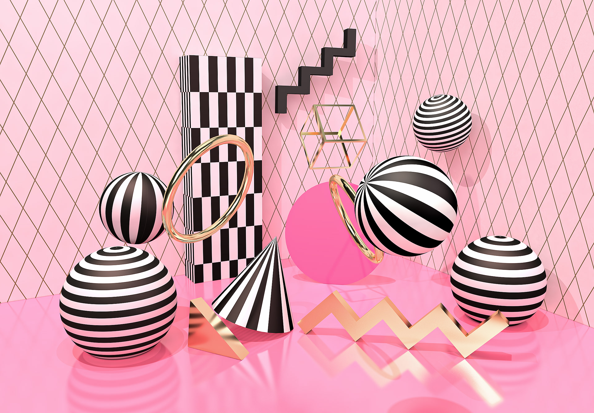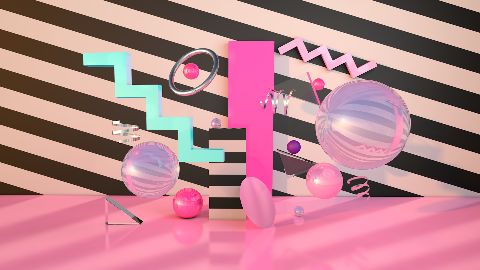 Exploration of geometry, lighting, materials, and reflection under the Memphis movement reference