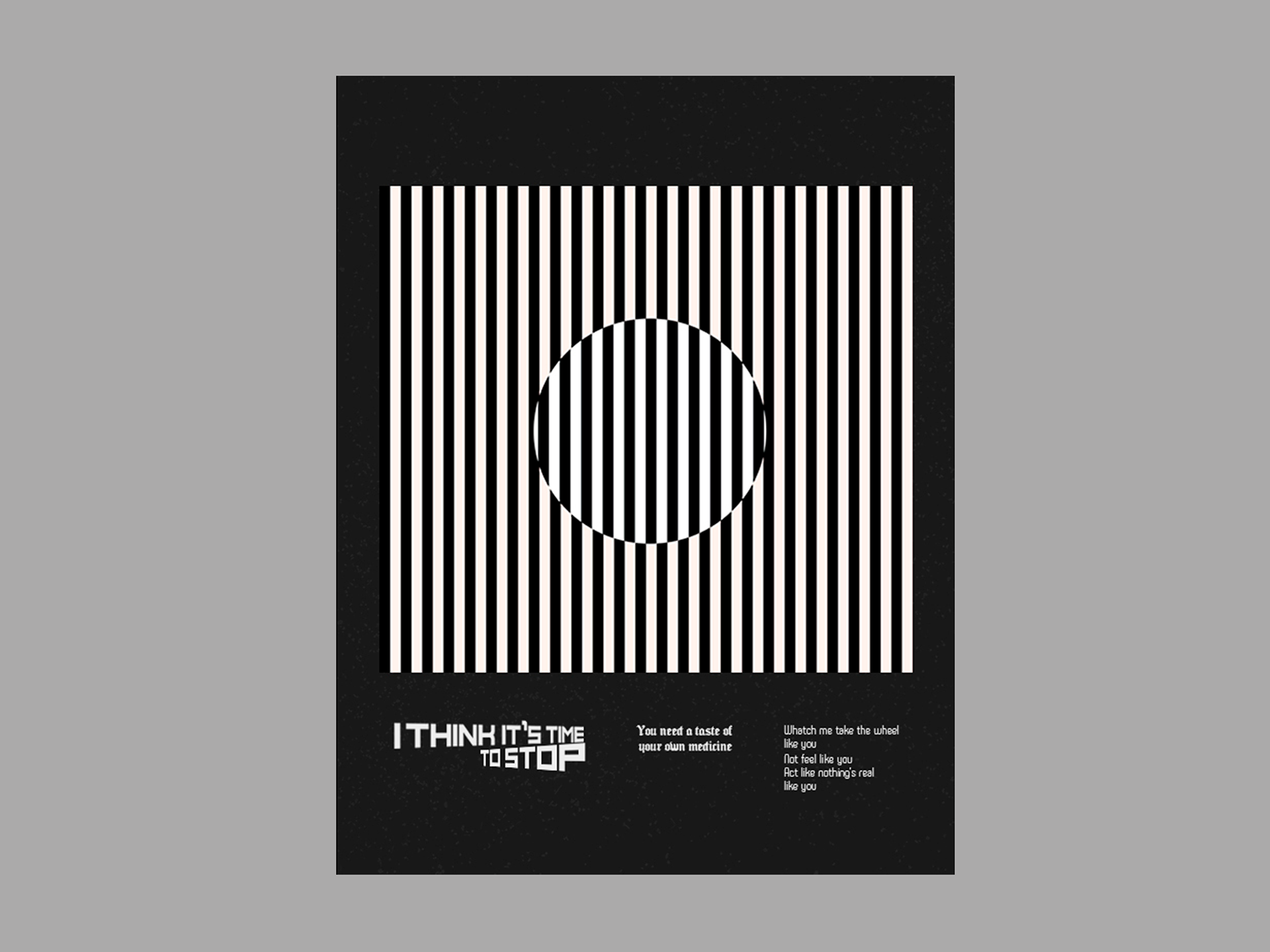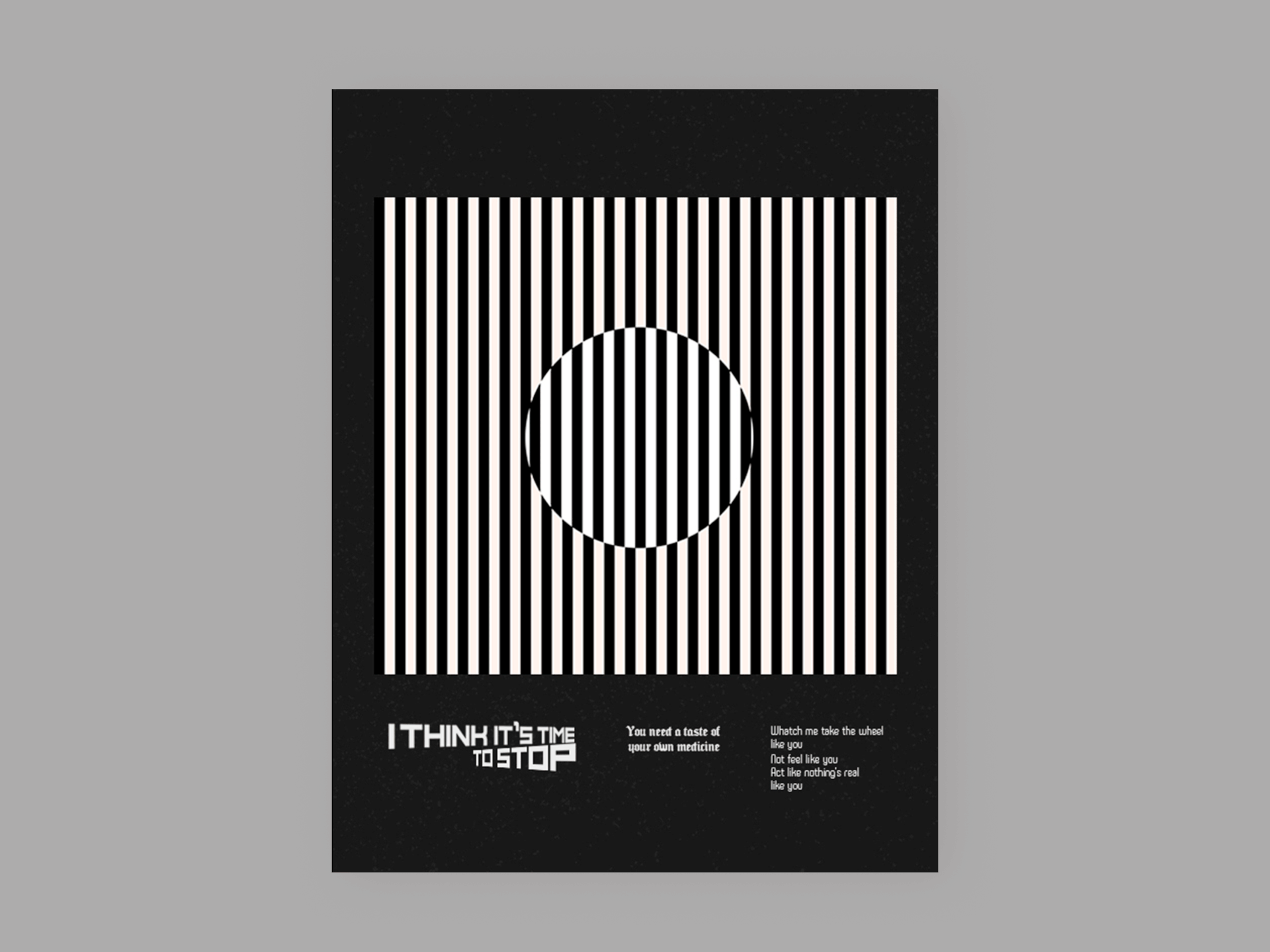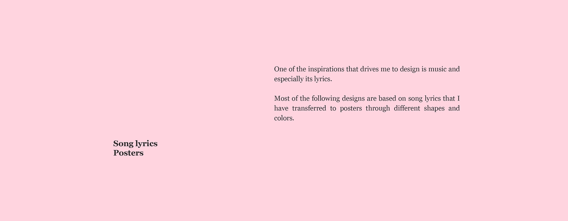 Most of the following designs are based on song lyrics that I have transferred to posters through different shapes and colors.