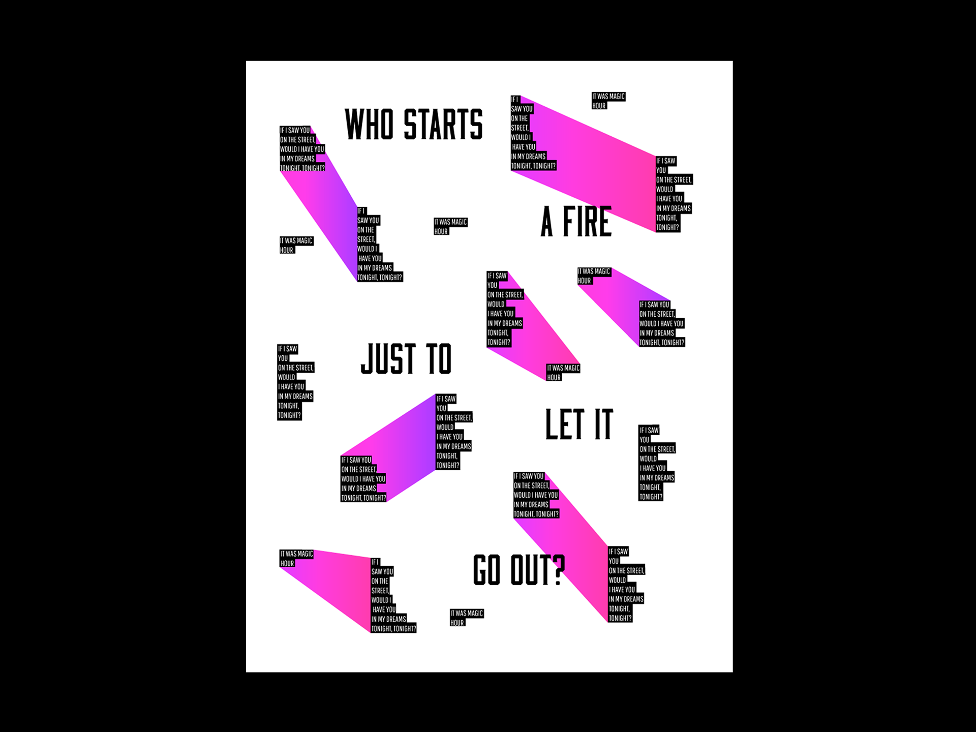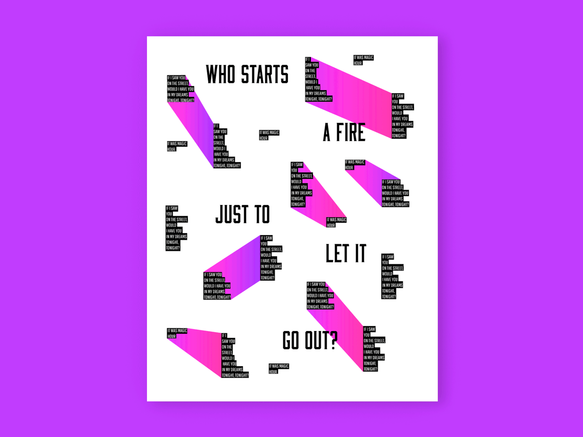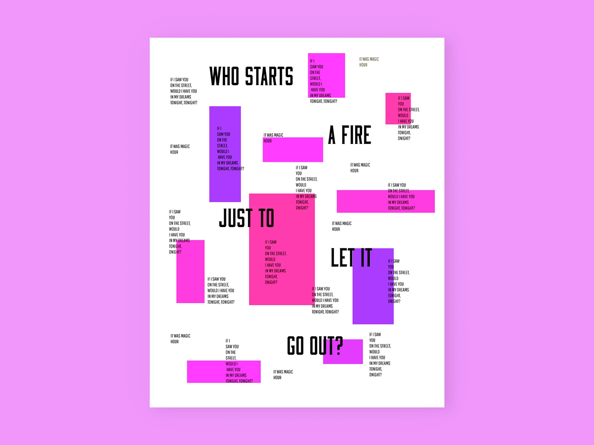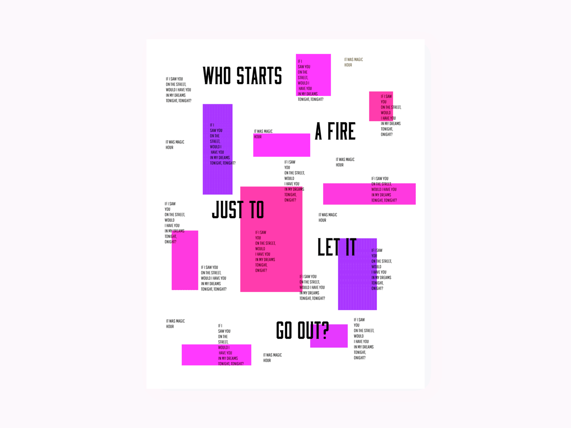 Most of the following designs are based on song lyrics that I have transferred to posters through different shapes and colors.